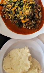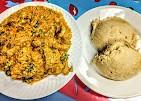 Experience delicious Nigerian dishes at Nkechi African Cafe in Inglewood, CA. Enjoy favorites like Ogbono Soup, Jollof Rice, and Isi Ewu Mutton meat salad.